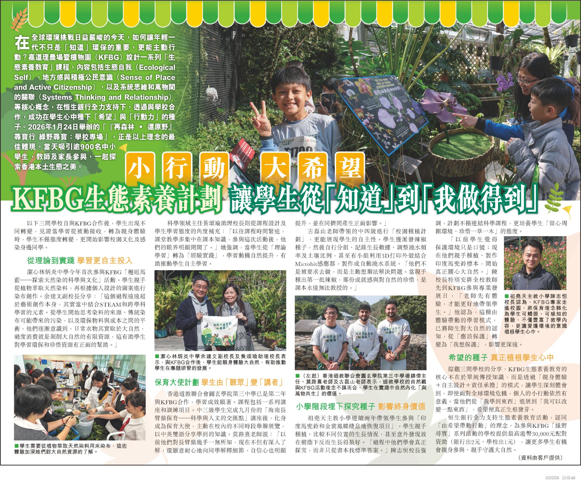 小行動 大希望KFBG生態素養計劃 讓學生從「知道」到「我做得到」- 星島日報